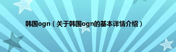 本文关于韩国ogn的基本详情介绍就讲解完毕,希望对大家有所帮助。