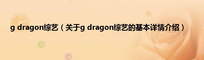 本文关于g dragon综艺的基本详情介绍就讲解完毕,希望对大家有所帮助。