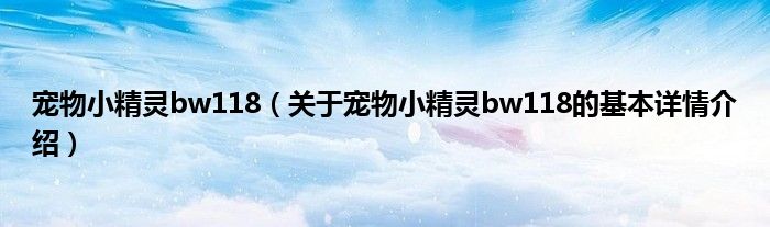 本文关于宠物小精灵bw118的基本详情介绍就讲解完毕,希望对大家有所帮助。