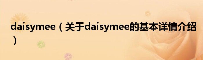 本文关于daisymee的基本详情介绍就讲解完毕,希望对大家有所帮助。