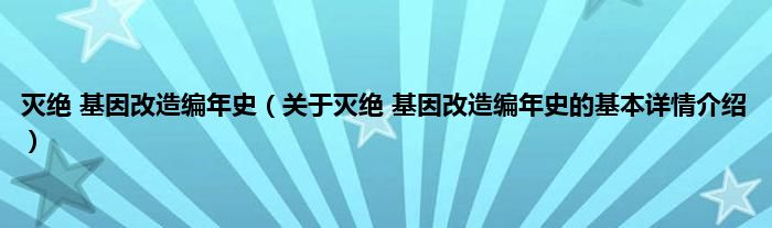 本文关于灭绝 基因改造编年史的基本详情介绍就讲解完毕,希望对大家有所帮助。