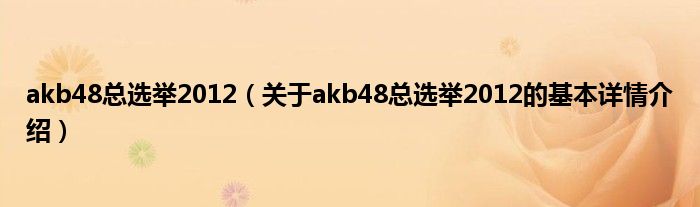 本文关于akb48总选举2012的基本详情介绍就讲解完毕,希望对大家有所帮助。