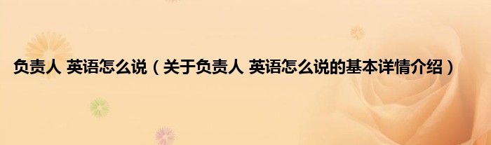 本文关于负责人 英语怎么说的基本详情介绍就讲解完毕,希望对大家有所帮助。