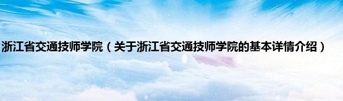 本文关于浙江省交通技师学院的基本详情介绍就讲解完毕,希望对大家有所帮助。
