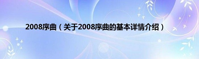 2008序曲(关于2008序曲的基本详情介绍)