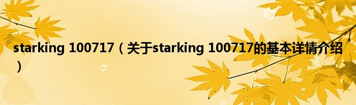 本文关于starking 100717的基本详情介绍就讲解完毕,希望对大家有所帮助。