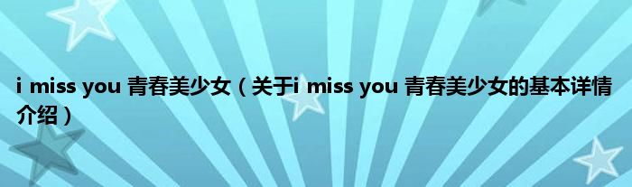 本文关于i miss you 青春美少女的基本详情介绍就讲解完毕,希望对大家有所帮助。