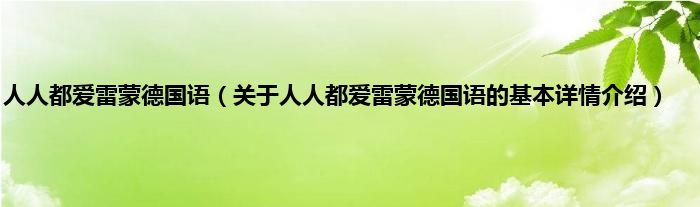 本文关于人人都爱雷蒙德国语的基本详情介绍就讲解完毕,希望对大家有所帮助。