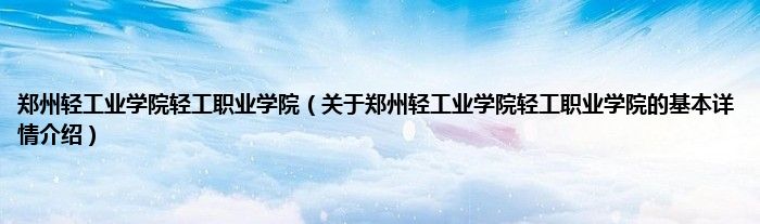 郑州轻工业学院轻工职业学院(关于郑州轻工业学院轻工职业学院的基本详情介绍)