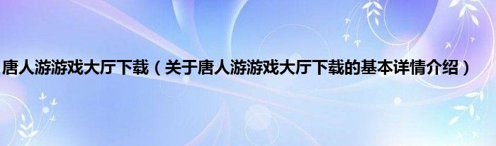 唐人游游戏大厅下载(关于唐人游游戏大厅下载的基本详情介绍)