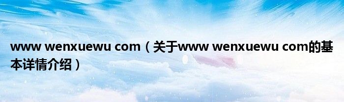 本文关于www wenxuewu com的基本详情介绍就讲解完毕,希望对大家有所帮助。