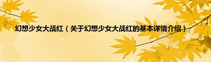 本文关于幻想少女大战红的基本详情介绍就讲解完毕,希望对大家有所帮助。
