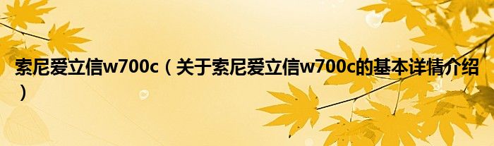 本文关于索尼爱立信w700c的基本详情介绍就讲解完毕,希望对大家有所帮助。