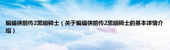本文关于蝙蝠侠前传2黑暗骑士的基本详情介绍就讲解完毕,希望对大家有所帮助。