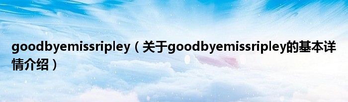本文关于goodbyemissripley的基本详情介绍就讲解完毕,希望对大家有所帮助。