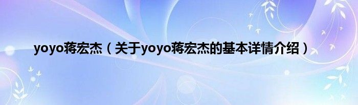 本文关于yoyo蒋宏杰的基本详情介绍就讲解完毕,希望对大家有所帮助。