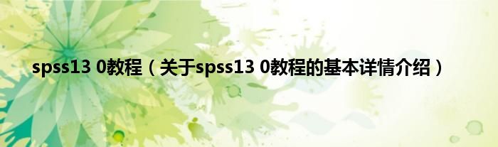 本文关于spss13 0教程的基本详情介绍就讲解完毕,希望对大家有所帮助。