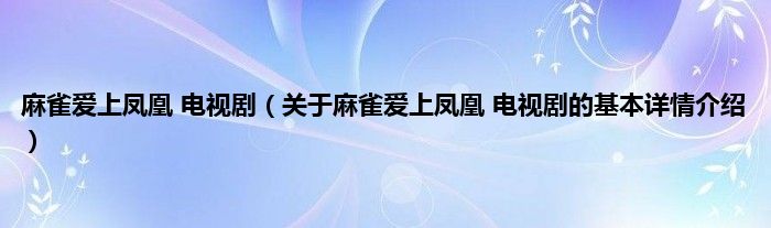 本文关于麻雀爱上凤凰 电视剧的基本详情介绍就讲解完毕,希望对大家有所帮助。