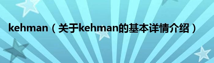 本文关于kehman的基本详情介绍就讲解完毕,希望对大家有所帮助。
