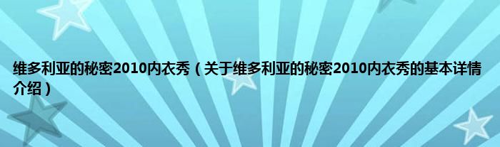 本文关于维多利亚的秘密2010内衣秀的基本详情介绍就讲解完毕,希望对大家有所帮助。
