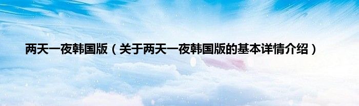 本文关于两天一夜韩国版的基本详情介绍就讲解完毕,希望对大家有所帮助。