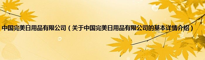 本文关于中国完美日用品有限公司的基本详情介绍就讲解完毕,希望对大家有所帮助。
