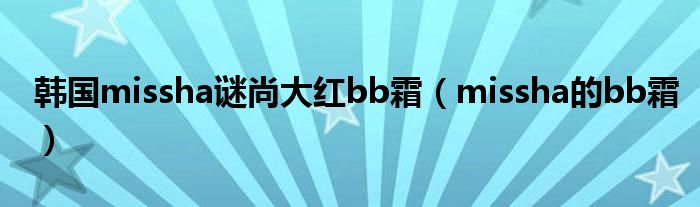 大家好,小问来为大家解答以上问题。韩国missha谜尚大红bb霜,missha的bb霜这个很多人还不知道,现在让我们一起来看看吧!