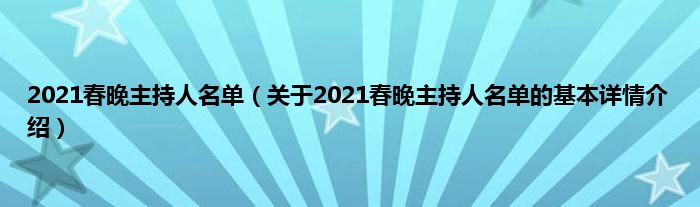本文关于2021春晚主持人名单的基本详情介绍就讲解完毕,希望对大家有所帮助。