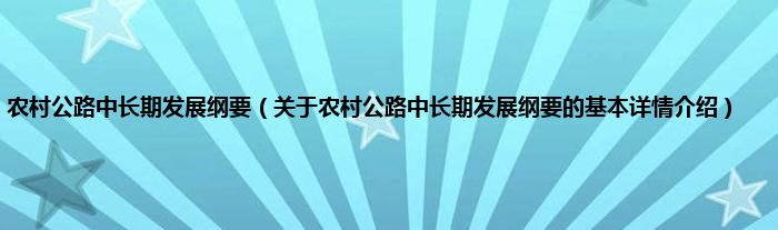 本文关于农村公路中长期发展纲要的基本详情介绍就讲解完毕,希望对大家有所帮助。