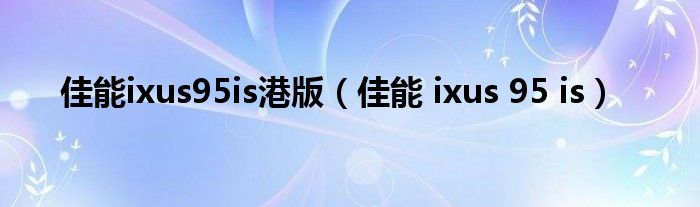以上就是【佳能ixus95is港版,佳能 ixus 95 is】相关内容。