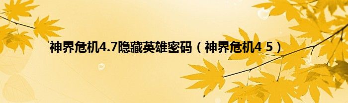 以上就是【神界危机4.7隐藏英雄密码,神界危机4 5】相关内容。