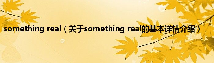 本文关于something real的基本详情介绍就讲解完毕,希望对大家有所帮助。