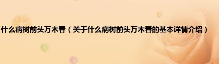 本文关于什么病树前头万木春的基本详情介绍就讲解完毕,希望对大家有所帮助。