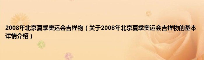 本文关于2008年北京夏季奥运会吉祥物的基本详情介绍就讲解完毕,希望对大家有所帮助。