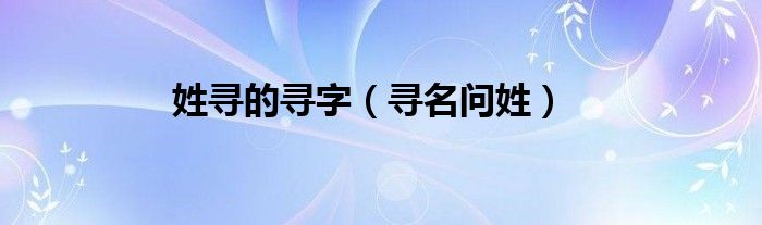 以上就是【姓寻的寻字,寻名问姓】相关内容。
