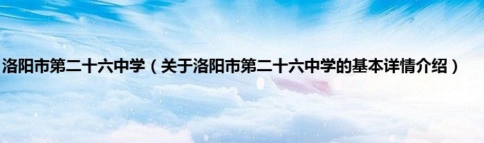 洛阳市第二十六中学(关于洛阳市第二十六中学的基本详情介绍)