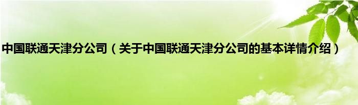 本文关于中国联通天津分公司的基本详情介绍就讲解完毕,希望对大家有所帮助。
