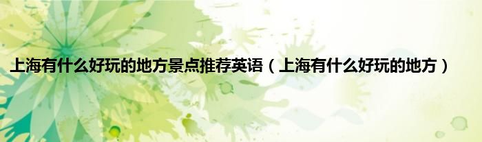 以上就是【上海有什么好玩的地方景点推荐英语,上海有什么好玩的地方】相关内容。