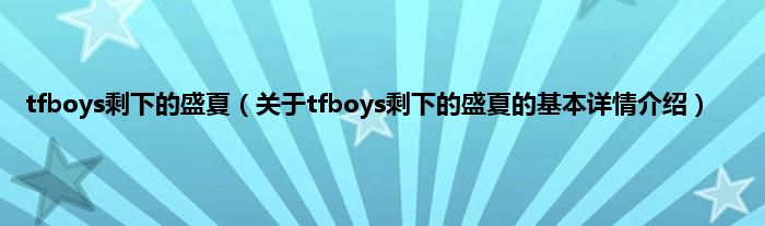 本文关于tfboys剩下的盛夏的基本详情介绍就讲解完毕,希望对大家有所帮助。