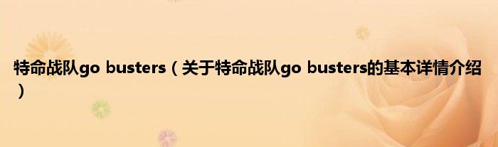 本文关于特命战队go busters的基本详情介绍就讲解完毕,希望对大家有所帮助。