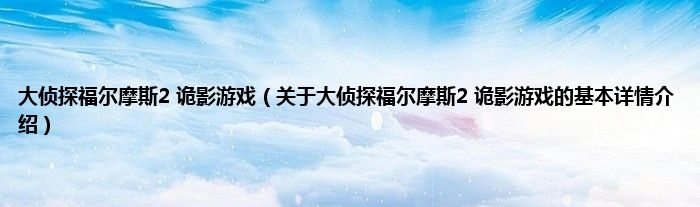 本文关于大侦探福尔摩斯2 诡影游戏的基本详情介绍就讲解完毕,希望对大家有所帮助。