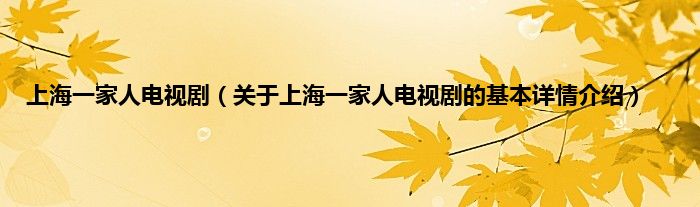 本文关于上海一家人电视剧的基本详情介绍就讲解完毕,希望对大家有所帮助。