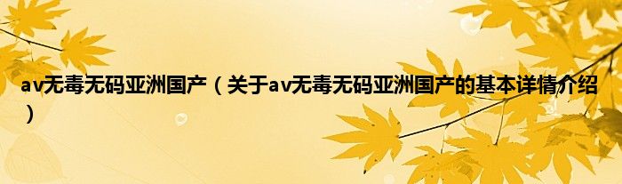 av无毒无码亚洲国产(关于av无毒无码亚洲国产的基本详情介绍)