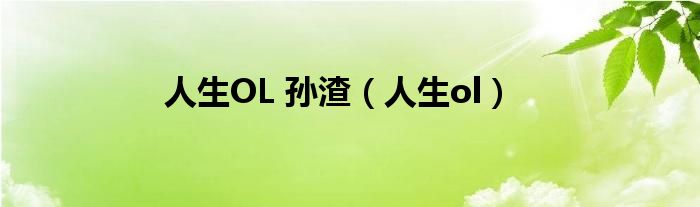 以上就是【人生OL 孙渣,人生ol】相关内容。
