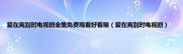 大家好,小问来为大家解答以上问题。爱在离别时电视剧全集免费观看好看喔,爱在离别时电视剧这个很多人还不知道,现在让我们一起来看看吧!