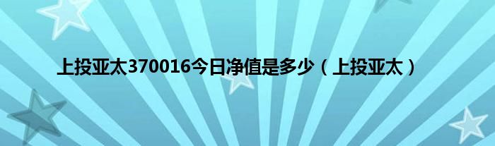 以上就是【上投亚太370016今日净值是多少,上投亚太】相关内容。