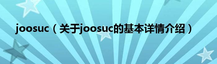本文关于joosuc的基本详情介绍就讲解完毕,希望对大家有所帮助。