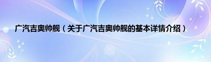 广汽吉奥帅舰(关于广汽吉奥帅舰的基本详情介绍)