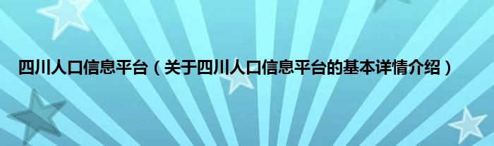 本文关于四川人口信息平台的基本详情介绍就讲解完毕,希望对大家有所帮助。