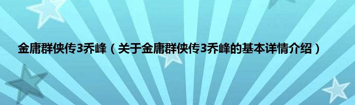 本文关于金庸群侠传3乔峰的基本详情介绍就讲解完毕,希望对大家有所帮助。